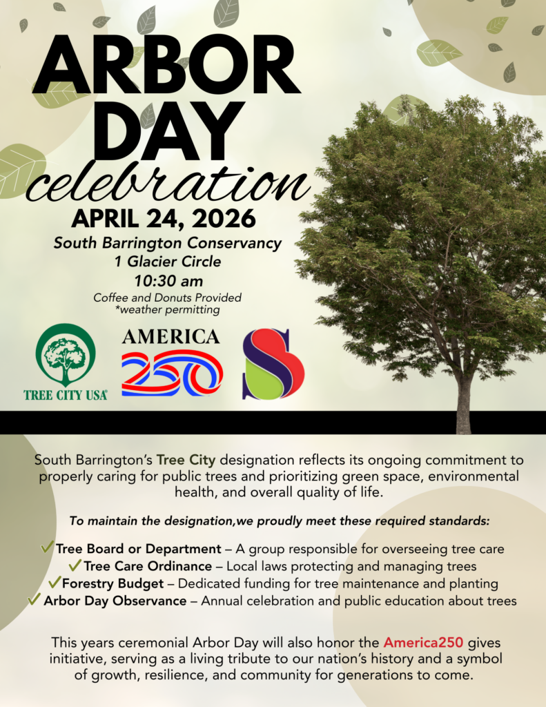 The April 24th celebration event will include the unveiling of our 2026 tree, a few remarks on this longstanding tradition, and the reading of the official proclamation passed at last week’s Village Board meeting. Join us for Coffee and donuts.