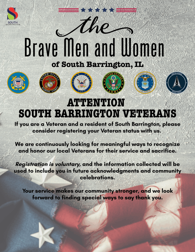 We are inviting any South Barrington residents who have served in the military to consider registering your Veteran status with us.